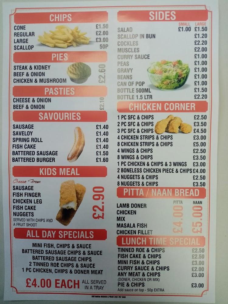 Nestled in the heart of Halesowen, Taks Fish & Chips defines what a traditional chippy should be. The address may lead you to believe it’s just another takeaway, but the atmosphere here reflects a blend of comfort and casual warmth. The space is wheelchair-accessible and offers seating for diners who prefer to enjoy their meals on-site. Parking is hassle-free with free street parking, making it easy to pop in for lunch or dinner. This place stands out within the vibrant local food scene, which ranges from street food vendors to upscale bistros, proving that quality doesn’t have to break the bank. With plenty of options geared toward kids and adults alike, Taks prides itself on catering to the entire family. I highly recommend checking out their eclectic offerings, from classic fish and chips to kebabs and southern fried chicken. It's reassuring to see how committed they are to serving the community, especially with their no-contact delivery option. Whether you're near or far, Taks makes enjoying a delightful meal incredibly convenient.